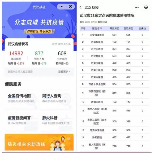 武漢也上線了"武漢戰(zhàn)疫"小程序,可以查詢武漢疫情狀況,以及疫情辟謠、發(fā)熱自查、發(fā)熱門診導(dǎo)航等,同時(shí)還能查詢武漢各大醫(yī)院的床位,方便感染者快速住院。