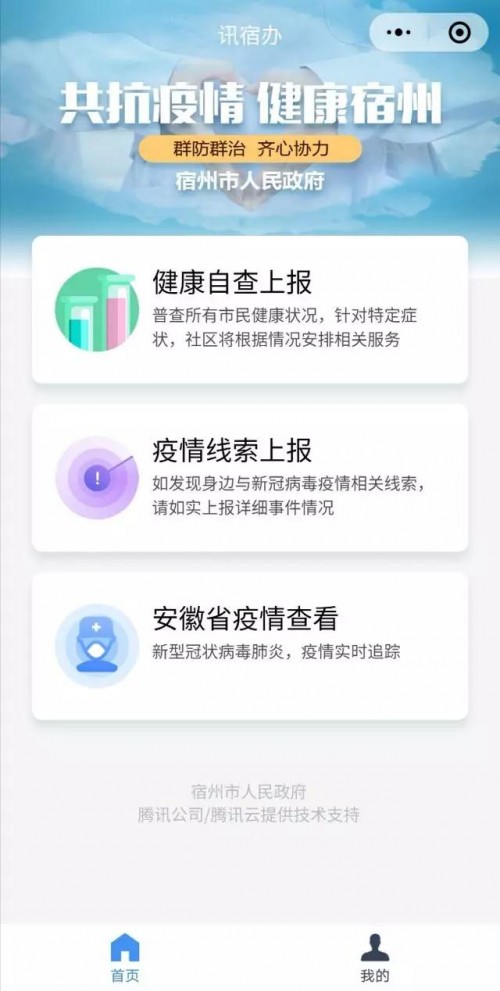 不僅僅這些地級(jí)市上線"防疫"微信小程序,一些小城也快速行動(dòng)起來。安徽省宿州市的"皖事通·迅宿辦"也上線了,支持查看疫情、線索上報(bào)和健康自查上報(bào)。